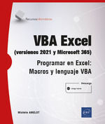 Completo y, a la vez, simple y práctico, este libro está dirigido a usuarios de Excel 2021 o de Microsoft 365 o a desarrolladores que deseen crear aplicaciones amigables, fiables y potentes. Ademásde los elementos básicos del lenguaje VBA (estructura del lenguaje y conceptos de programación orientada a objetos) que permitirán automatizar el manejo de sus datos, aprenderá a crear tablas dinámicas y gráficos, a diseñar formularios, a personalizar la interfaz de Excel, especialmente la cinta de opciones, a comunicarse con las otras aplicaciones de Office, a importar o publicar páginas web y archivos XML y a aprovechar las funciones API de Windows. Cada capÃtulo incluye numerosos ejemplos. El libro concluye con un ejercicio integrador que lo guiará a través de la creación completa de una aplicación Excel. Los ejemplos incluidos en este libro pueden descargarse desde el sitio de Ediciones ENI,